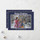 Merry Christmas Snowflakes Navy Blue Photo Frame Holiday Card