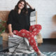 Beautiful gold snowflake Christmas allover printed legging is perfect for your joyful Christmas holidays. Beautiful gold snowflakes on red background give it a festive look. Perfect Christmas gift for your family and friends.