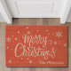Merry Christmas Snowflakes Red Personalized Name Fiber Doormat