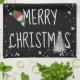 Snowman on Merry Christmas text with white pine tree and snowflake border.