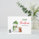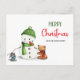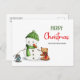 Cute Merry Christmas family postcard with an illustration of a cute snowman surrounded by some animal friends. Personalize the text to add your own heartfelt message and send to your loved ones this upcoming holiday season. Illustrated and designed by Patricia Alvarez.