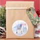 Merry Christmas Snowy Mountain Scene Skiers Classic Round Sticker