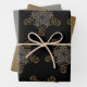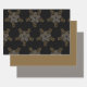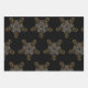 The design features the holiday wish "Merry Christmas," in gold and silver font, in the form of a most elegant, artistic calligraphy in the shape of a star. It is a wonderful representation of the Christmas spirit. The pattern of repeated stars is placed against a black background. The brilliant combination of the colors silver, gold, and black brings on the sense of elegance and sophistication to your special gifts.