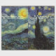 Merry Christmas Starry Night by Vincent van Gogh. Most famous fine art, impressionism, landscape oil painting. Favorite and loved by many people. A beautiful blue starry night with yellow imagination stars of hope and joy.