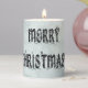 Merry Christmas Starry Night Holiday Font Image Light Blue Glitter Pillar Candle. Personalize this template with the Merry Christmas image. The customized image looks festive on any product.