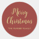 Add a touch of festive charm to your holiday gifts, cards, and packages with this elegant "Merry Christmas" sticker. Featuring a faux gold casual script on a vibrant red background, it's perfect for spreading holiday cheer. Great for party favors, envelopes, or DIY projects, these stickers bring a modern yet classic touch to your Christmas celebrations.