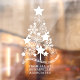 Christmas Tree window cling lettered with "we wish you a merry christmas". The stylized tree is made up of snowflakes, stars and flowers with the festive greeting at the base. The template is set up for you to customize the design with your company name or marketing message. To change any of the colors, click "customize further".