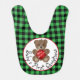 This cuddly Teddy Bear is holding a red ornament that reads Merry Christmas. The background is a green and black checkered pattern. In the center is the Teddy bear with text that reads "Baby's First Christmas" This text can be customized.
