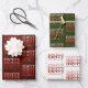 Merry Christmas Text Greeting Red & Green Pattern Wrapping Paper Sheets