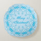 Merry Christmas text round frame snowflake blue white