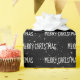 White MERRY CHRISTMAS text with snowflakes on black background.