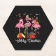Merry Christmas Three Flamingo With Santa Hat Paper Coaster