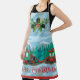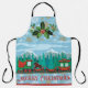 Merry Christmas Train Apron with our bright cartoon Christmas Train and little Scotty Dog riding along on ice blue background.