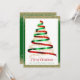 This corporate greeting card features ribbon Christmas tree in red and green with gold glitter accent. Text "Merry Christmas" and personalized with your company name. Back features gold glitter on green background with custom message and your company logo. Perfect for sending season's greetings to clients, employees and everyone on your list.