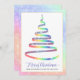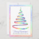 This corporate greeting card features ribbon Christmas tree in rainbow colors with white snowflakes. Text "Merry Christmas" and personalized with your company name. Back features custom message and your company logo. Perfect for sending season's greetings to clients, employees and everyone on your list.