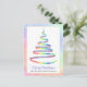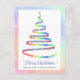 This corporate greeting postcard features ribbon Christmas tree in rainbow colors with white snowflakes. Text "Merry Christmas" and personalized with your company name. Back features custom message and your company logo. Perfect for sending season's greetings to clients, employees and everyone on your list.