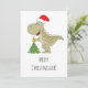 Merry Christmas Tree Cute Dinosaur Santa Hat Holiday Card