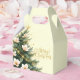 This favor gift box is printed on with a single Christmas tree in green. Festive text of Merry Christmas wraps around the box on ivory color background with small decorative gold stars.