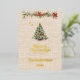 Merry Christmas tree garland beige burlap gold Foil Holiday Card