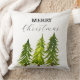 Christmas trees watercolor throw pillow. Merry Christmas, green, festive, vintage, retro pillow.