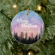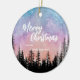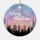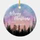 Merry Christmas tree Night gradient script forest Ceramic Ornament