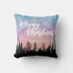 Merry Christmas tree Night gradient script forest Throw Pillow