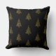 Merry Christmas Tree Pattern Black Gold Elegant Throw Pillow