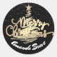 Merry Christmas tree Script Name Gold Black Classic Round Sticker