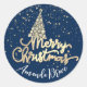 Merry Christmas Tree Script Name Gold Diamond Blue Classic Round Sticker