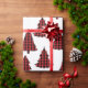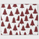 This design features a merry Christmas tree cute custom, a classic simple red calligraphy script, a classic buffalo check plaid pattern, a custom holiday greeting gift wrap, a Christmas gift wrapping supplies, a stylish trendy typography font text, simple Christmas tree pattern style, a classic country farm farmhouse design, a custom Christmas wrapping paper, with a red and black buffalo plaid