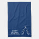 Merry Christmas Tree w Star Blue White Line Art Kitchen Towel