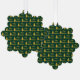 Merry Christmas appears in a faux (not foil) gold script on this very dark green and gold ornament. Faux gold Christmas trees make a pattern with the text. You can edit the text if desired.