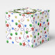 An Elegant Party Favor Christmas Gift Box Patterned In Tree Trimming Of Different Colors and Shapes