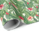 Merry Christmas Tropical Flower Leaf Green Red Wrapping Paper