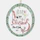 Funn and colorful Christmas themed double sided floral green ceramic ornament with colorful typography "Merry Christmas" and editable text below. The text can be edited by clicking on "personalize this template" and you can change the 3 text groups. This Christmas ceramic ornament is suitable as a keepsake, housewarming gift, or just a colorful addition to your Christmas tree.