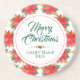 Merry Christmas Typography & Poinsettia Pattern Coaster