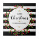 Elegant modern black and white stripes with Merry Christmas modern typography with Christmas red berries wreath.
