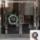 A watercolor wreath of pine branches and the words - We Wish You a Merry Christmas and a Happy New Year (or any text) are featured on this window cling - Choose ANY SIZE and **front or back cling. (Size shown is 24" x 24", but can be made larger or smaller.)