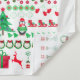 Our festive patterned Merry Christmas Ugly Sweater design includes red and green holiday elements: ornaments, mittens, snowflakes, reindeer, gift boxes, trees, ice skates, wreaths, bells, a decorated Christmas tree and a festive sign-carrying Penguin.