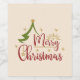 red merry christmas text with a green tree and gold stars. background color can be changed.