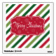 Merry Christmas illustration with text and snowflakes design on red, white and green striped background