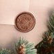 Before the wax hardens, gently and evenly press the wax seal stamp into the melted wax, ensuring it's centered.