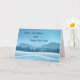 Winter landscape with Merry Christmas and Happy New Year text. Cozy greeting card for the holidays with a blank white interior. Snowy winter landscape on the back. Editable.