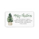 Elegant "Merry Christmas" holiday card address label design features a rustic chic watercolor painted winter pine tree in a basket. Personalize the modern green and charcoal gray wording with a custom greeting and your return address text. White background color.