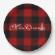 Merry Christmas with tree on buffalo plaid Paper Plates