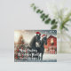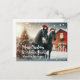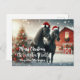 Merry Christmas with two black horses wearing a santa hat with a decorated Christmas tree and red barn personalized Postcard