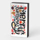 Merry Christmas in fun typography surrounded by lots of Christmas holiday items. Great addition to your home fireplace mantle or give as a gift.