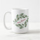 Lovely greeting on a mug. Classy green and red wreath design and Merry Christmas greeting.