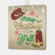 Dress Up Your Christmas Tree and Personalize this Comical "One of a Kind" Merry Christmas Y'all Christmas Ornament! It Features a Cowgirl Hat and Cowgirl Boots in Red and Black Plaid with Green and Gold Glitter Highlights on a Gold Christmas Background and the Festive Quote...."Merry Christmas Y'all"!
