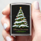 A serene winter scene featuring a majestic Christmas tree adorned with shimmering ornaments and draped in a blanket of snow. The text "Merry Christmas" is elegantly this displayed at the base of the tree, adding a touch of festive cheer to the winter wonderland.